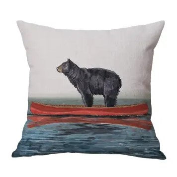 18"x18" Bear In Canoe Decorative Pillow, Indoor/Outdoor