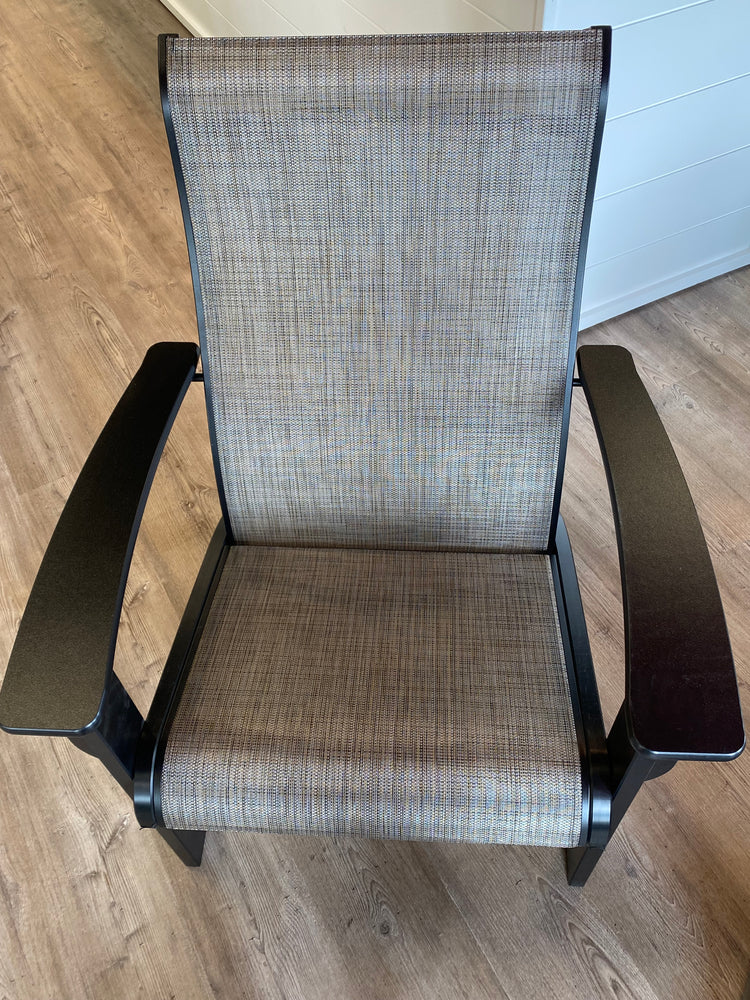 Marine Grade Polymer and sling fabric come together to create this modern and comfortable Adirondack chair. MGP is comfortable to the touch on hot and cold days. Strong, durable construction, MGP contains over 30% recycled resins. All slings are constructed with high performance outdoor quality fibers, and are easy to replace if needed.