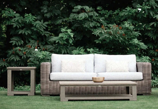 The Cubo Collection; Modular meets modern, then embraces the elements of nature to offer great comfort and sophistication. An aluminum and resin frame give the collection strength while aluminum legs with a heat transfer wood grain finish add style.