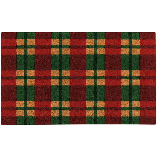 The Holiday Plaid coconut fiber doormat will make visitors feel welcome. Printed with fade resistant inks, it has a strong U-shaped label with jute rope hook for easy hanging. The coir fiber is hyper renewable and backed with durable vinyl. It’s a Christmas spin on a perennially-preferred pattern—bands of red, green and white form a cheerful collection of plaids, perfect for dressing up the holiday home.