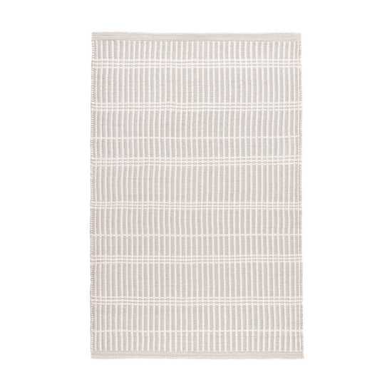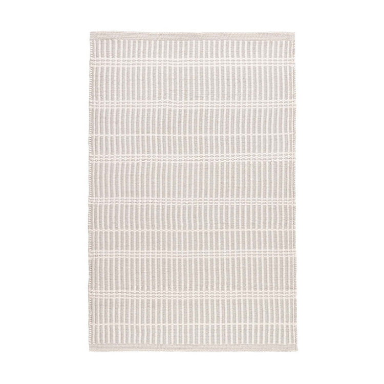 This bold, low profile, and tightly-woven rug is a stylish and sophisticated take on subtle patterning. Delicate, end-on-end mini stripes are intersected by intermittent bars of ivory overlay. Made of superheroic polypropylene and terrific for high-traffic areas, this scrubbable and bleachable indoor/outdoor rug will stand up to all that you dish out for years to come. Available in Navy, French Blue, Platinum, Shale, Fuchsia or Sprout.