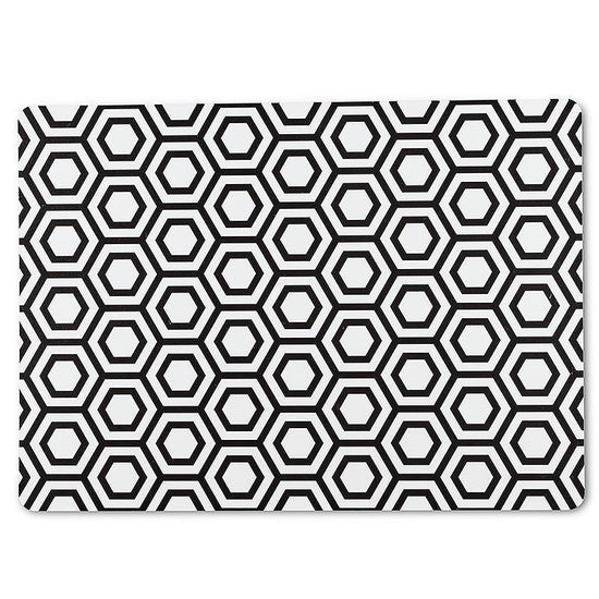 Elevate any place setting with the help of this fun and functional All Over Hexagon Tile Placemat. This oversized placemat features a classic hexagonal tile pattern commonly seen in European bars, bistros and cafes to make any eating area a little more stylish – from nooks and kitchens to counters or even where the pets eat! Simply wipe clean with a damp, non-abrasive cloth and reuse again and again.