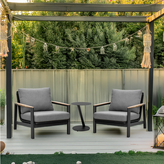 Ambiance is a contemporary table design. The materials are solidified with rust free aluminum frames to give you the structural durability to endure fluctuating weather conditions, and a Sintered stone top for extra durability and strength.