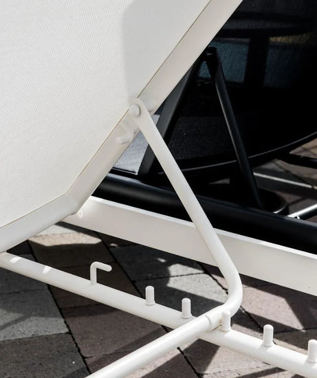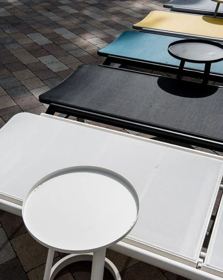Where else can you enjoy long, lazy days in the sun but in the Bahamas - or on the Bahamas lounger? Complete with a matching side table, our Bahamas lounger, with its high tenacity sling and adjustable back can double as bench seating in the flat position. Its sled base will ensure your lounge experience stays above the grass or sand and wheels will let you choose exactly where you feel like lounging on any particular day. The aluminum frame’s concealed hardware means nothing but luxury as you lounge in the “Bahamas”.