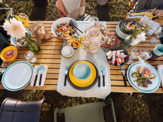 Plastic dinnerware so stylish that you'll want to use it indoors too? That's the new Bloom range from Mepal. The pieces all have a unique, matte, speckled finish. The four colours complement each beautifully when they're mixed & matched. All qualities that make them ideal for intimate dinners on your patio, sultry summer barbecues, or fun family picnics. Can't wait for the warmer weather? Use your Bloom dinnerware indoors!