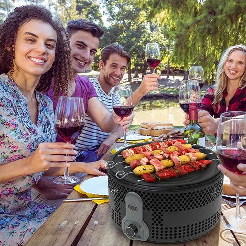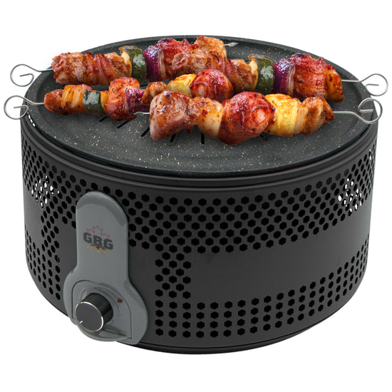 Gather your family and friends around your new outdoor meal tradition! Meet the Georgian Bay Grills Canadian Hot Stone, tabletop charcoal grill! Completely self‑contained with a charcoal burning engine at its core and a cast‑iron hot stone grill so you and your friends can sit around it to grill all your favourites, right at the table! This unique grill can be used with skewers (sold separately) for a fondue or Korean BBQ feel or place your favourite items right on top!