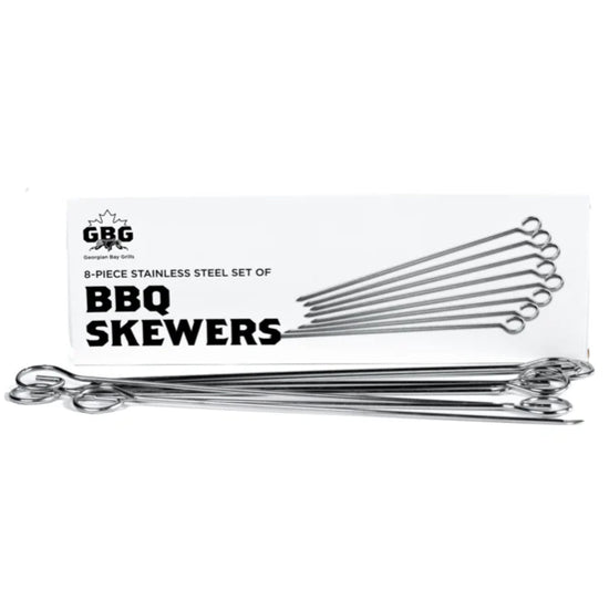 Special set includes an 8‑piece Stainless Steel Skewer Set and a Zippered Nylon Carry Bag w/ shoulder strap.