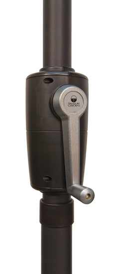 7.5′ Button Tilt Market Umbrella with Treasure Garden Frame. Black Frame. Umbrella Base sold separately. Sunbrella canopy made in Toronto.