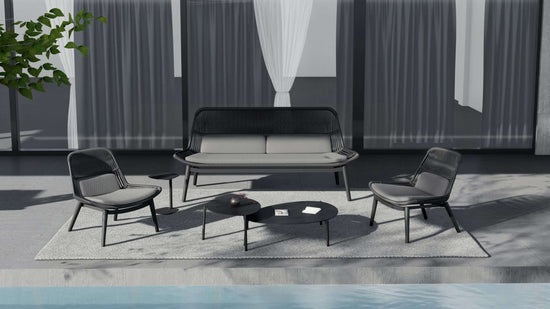 Crafted from high quality aluminum, the Cobblestone collection is an embodiment of sophistication and durability. The lightweight yet sturdy aluminum frames, finished with a weather-resistant powder coat, are meticulously intertwined with marine grade rope, renowned for its strength, UV resistance and ability to withstand harsh weather conditions. Pair all 3 sizes (offered separately) for a beautiful nesting table display.