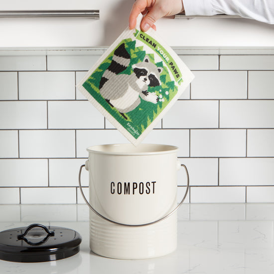 Embrace your kitchen cleaning with a smile every day with this versatile Clean Your Paws Swedish Dishcloth by Ecologie. A sweet raccoon friend is ready to lend a paw to help clean hands, polish your glassware or wipe your counters.
