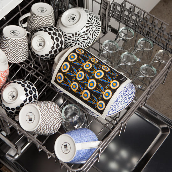 Take an artistic approach to your chores with the modern design of this Still Life Swedish Sponge Cloth. The bold repeated pattern dresses up the soft cloth, which offers streak-free cleaning and quick spill cleanups with its absorbency.