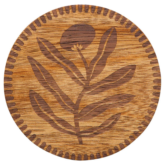 With natural acacia wood grain patterns, each coaster in these sets is truly unique. Danica Studio symbols are laser-engraved into the surface, creating a splendid medallion effect.