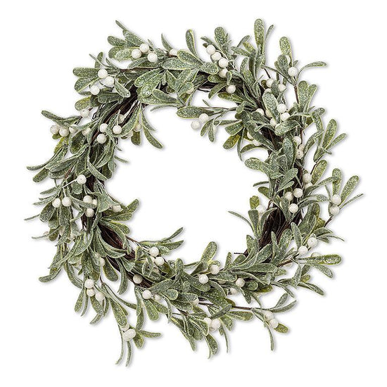 Make your entrance way more inviting with this Frosted Mistletoe Wreath – ;and be sure to give out those holiday kisses, too! Crafted out of plastic and natural materials, this wreath comprised of faux mistletoe leaves and glittered berries – ;accented with a wintry frosted texture – is a traditional way to welcome houseguests to your door.
