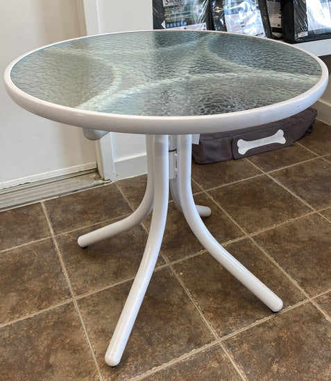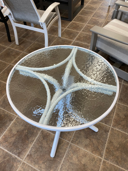 The Telescope Casual Round Glass Dining Table is very durable and lightweight, and requires minimal maintenance. No umbrella hole included.