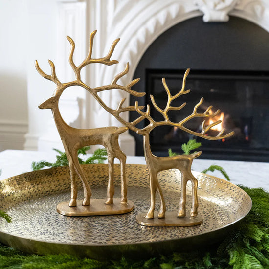 Add some contemporary festive flair to any space with this evocative Large Gold Modern Reindeer. The minimalist sculpt of this gold-plated aluminum deer figurine is sure to bring a touch of contemporary style to your holiday décor.