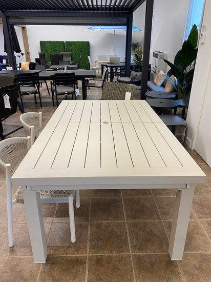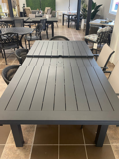 The Magic Table – Designed with a perfect blend of aesthetics and functionality, offering a robust solution for your outdoor dining and entertaining needs. Masterfully constructed from extruded aluminum and available in a variety of powder coated finishes.