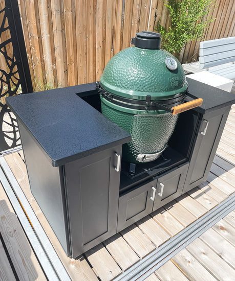 This Kitchen Island accommodates a variety of natural gas, LP or kamado style grills.