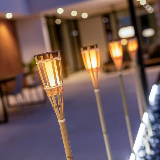 The Hiama garden spike from Newgarden is a handcrafted outdoor lighting solution that utilizes solar power. Made from natural bamboo, it features an LED module and solar panel on top for easy charging. Its versatility allows it to be placed in a variety of settings, such as passageways, next to a swimming pool, or even in a planter.