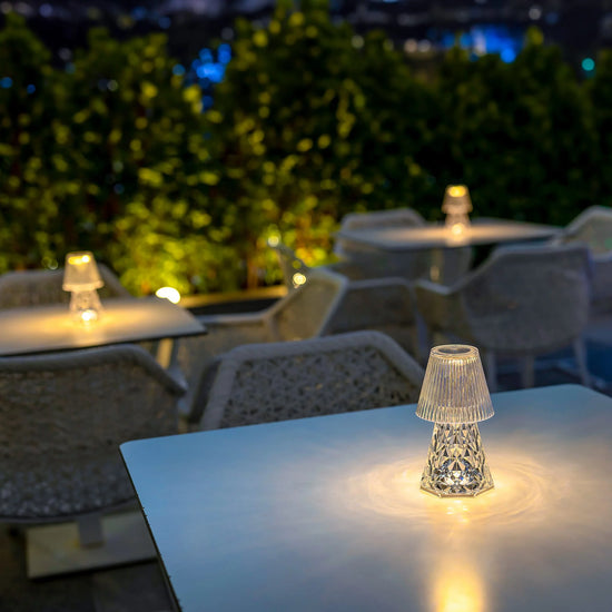 The Lola Lux table lamp from Newgarden is an elegant and stylish choice for any environment that requires accent lighting. Its transparent and durable polyamide design gives it a unique and modern appearance, accentuated by touches of mirror which create a remarkable lighting effect.