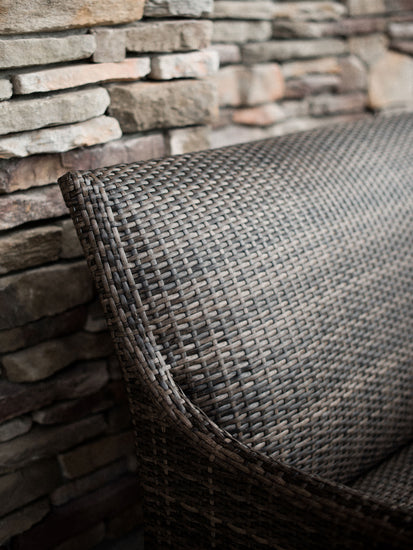 A collection of outdoor dining and living pieces, the Biltmore will bring you closer to nature while allowing you to kick back in total elegance. Available in our Wild Truffle resin woven finish on an aluminum frame, this set can weather the elements with its heat transfer legs and tables.