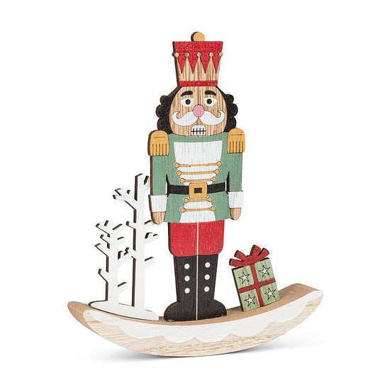 You'll be rocking around the Christmas tree with this Rocking Classic Nutcracker! Crafted from wood, this dapperly dressed nutcracker stands on a rocking base with trees and a wrapped gift. A classic and whimsical addition to your holiday decor.
