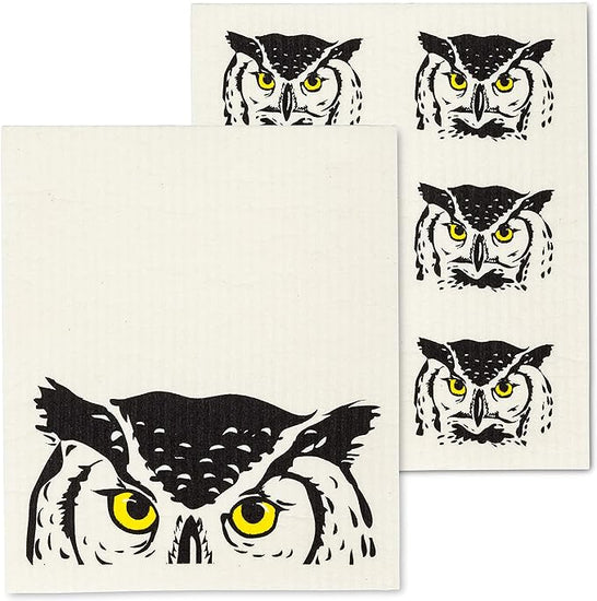 Set of 2 Peeking Owl Swedish Sponge Cloths