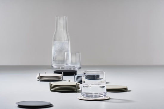 These are absolutely indispensable if you like a quiet drink and a spotless table. The coasters are made of silicone with a smell edge, preventing drops and condensation from the glass from staining the table. Comes in a practical holder with 6 pieces.