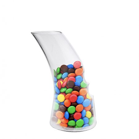 The Snak Carafe lets you enjoy snacks hygienically by pouring your favorite nuts or candies straight into your hand instead of sharing from the communal bowl. No more fingers in the party snacks! Share snacks not germs! The artisan-made mouth-blown carafe has a clean, individually-crafted, contemporary design with ergonomic finger notches for easy pouring. Each one is unique, and the 10 oz size is perfect for smaller candies and nuts.