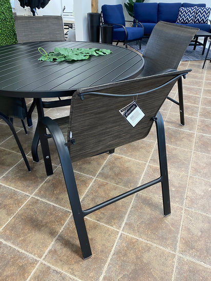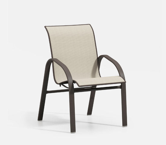 The Stella collection from Homecrest features elegantly sloped arms and their signature double layer sling seat, giving it a clean visual style. This collection is sure to imbue outdoor spaces with an openness that will encourage frequent, relaxing use. Stella is part of the “Designed with Weight” collection by Homecrest, which makes it ideal for windy conditions. Custom aluminum extrusions make up the arms and base, while powder-coated solid steel crossbars and internal side rails create added stability.