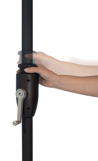 Treasure Garden 7.5' Round Umbrella with glide tilt. Available in multiple O'Bravia fabric colours with a black frame.