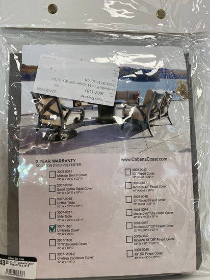 Size: 20''W x 76''D, fits 9'-11' Round Umbrella.